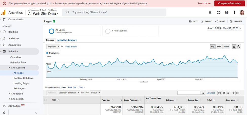 Below are the traffic stats from January to May 2023 on the UA version of Google Analytics before it changed to GA4.
